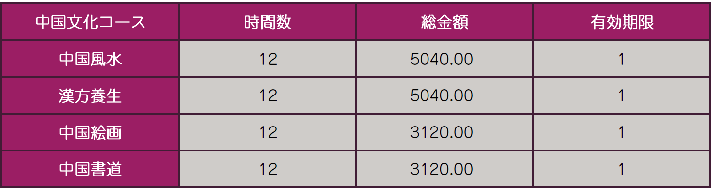 パンダ語学学校中国文化コースの紹介と通常料金表